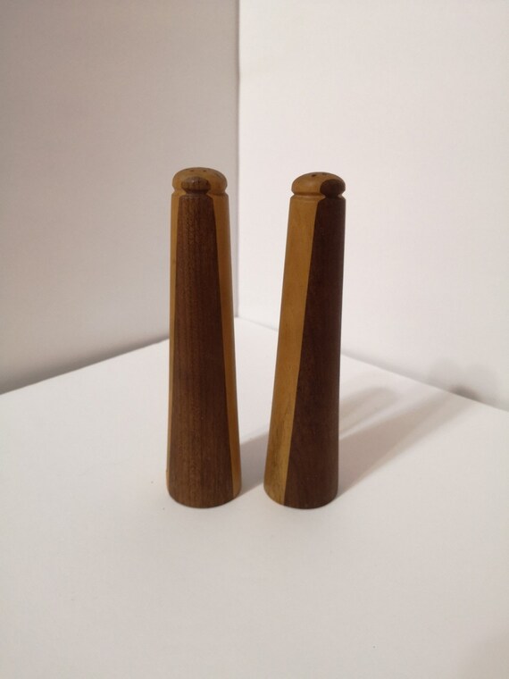 Mid Century Modern Wood Salt And Pepper Shaker Etsy