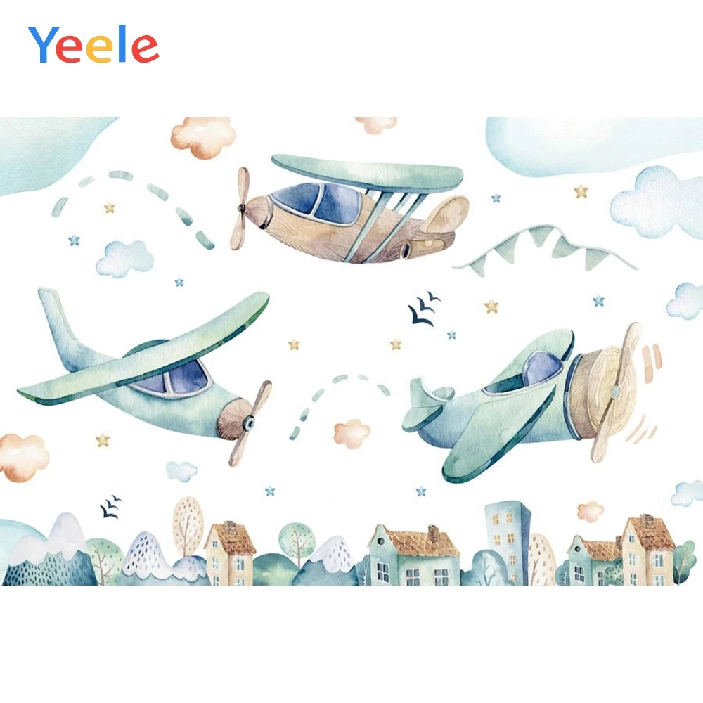 Cartoon Plane Baby Boy Birthday Backdrop Newborn Baby Shower Portrait Custom Vinyl Photography Background For Photo Studio Props|Background| - AliExpress