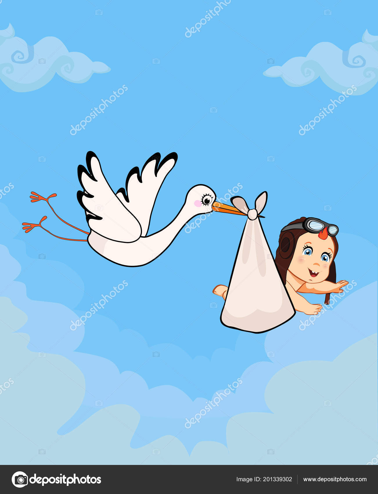 Cartoon Vector Illustration Stork Carrying Cute Baby Boy Pilot Hat — Stock Vector © Katarepsius #201339302